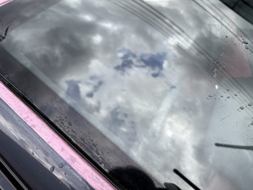 こちらの車のフロントガラスのうろこ除去と超撥水ウィンドコーティングを施工させて頂きました。