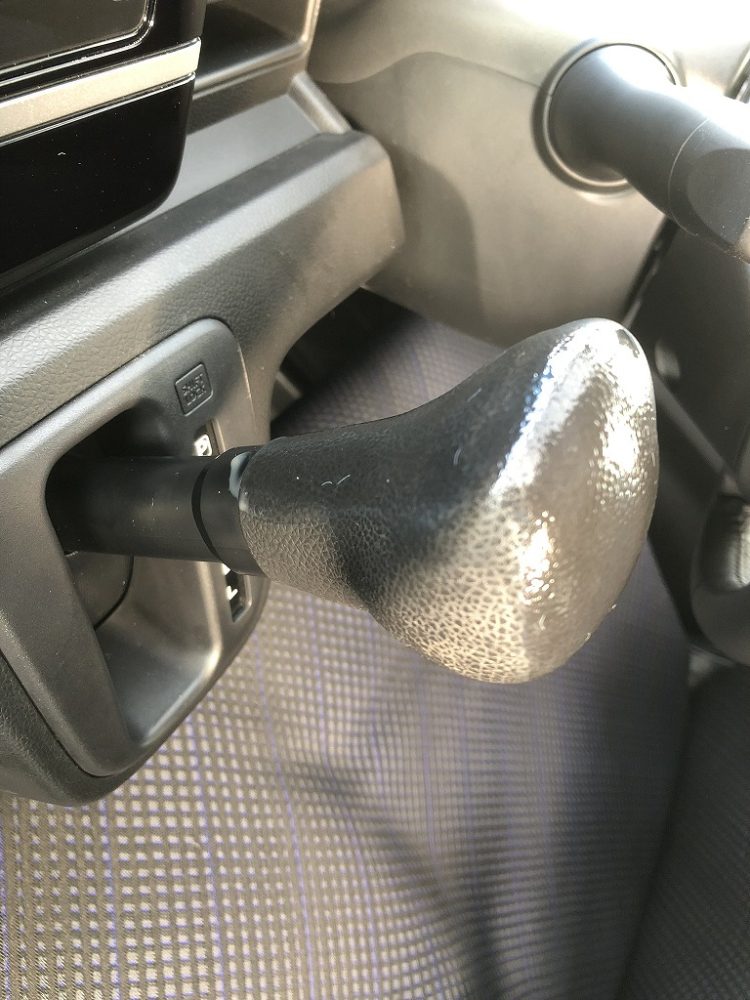 別の車のものですが、シフトノブは結構汚れています。ステアリングの次に触れる回数の多い場所。しかも少々力を使いますから手の皮脂やハンドクリームなどの影響を受けやすい場所です。