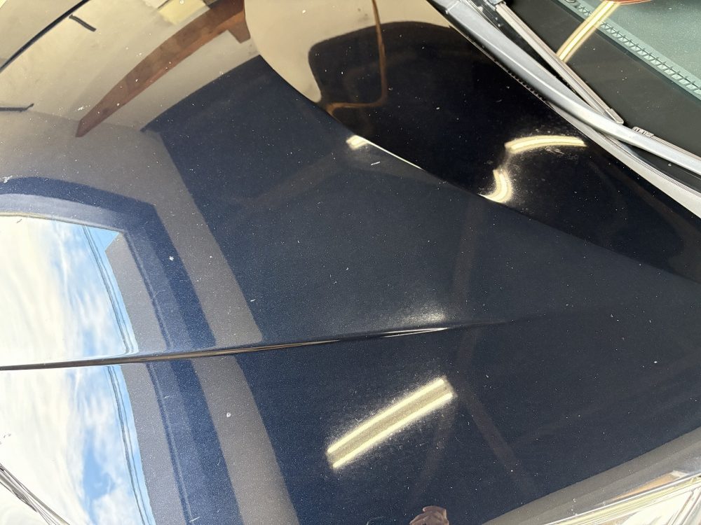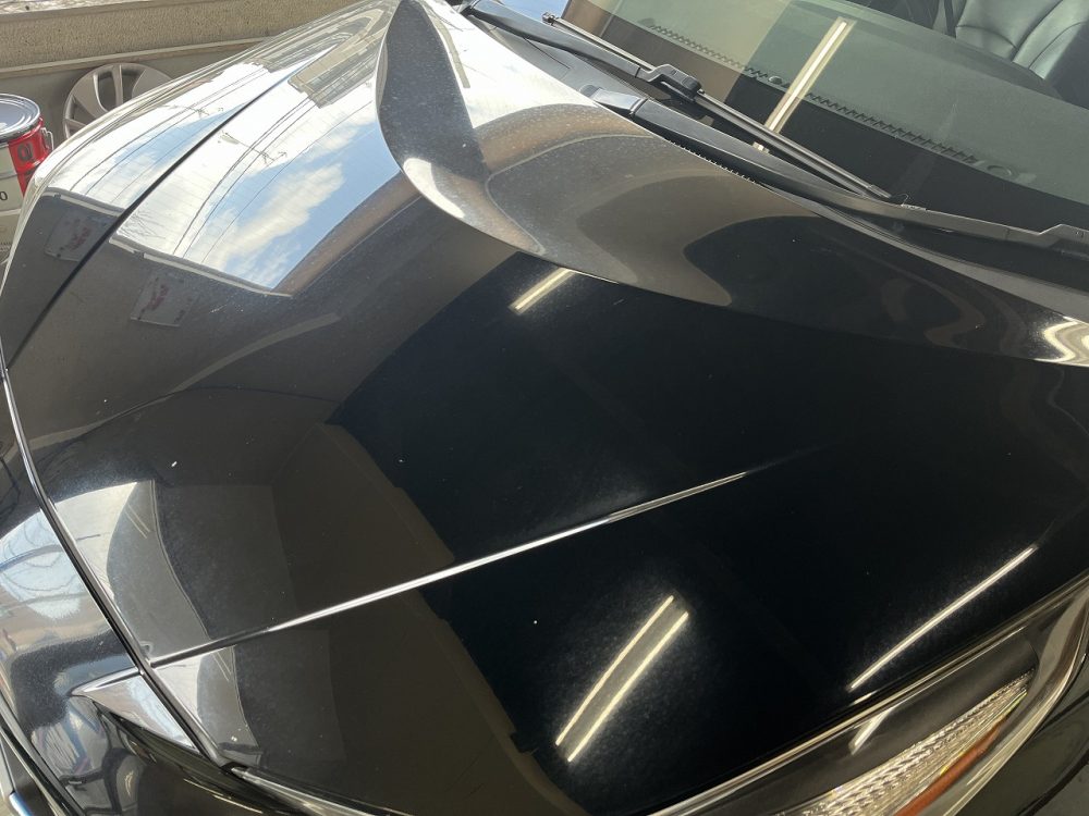 初期施工時点で相当の距離(10万km程度)ありましたので、飛び石や塗装の陥没含め基本的な劣化があります。完全なる鏡面を作るには再塗装が必要であるボディになります。