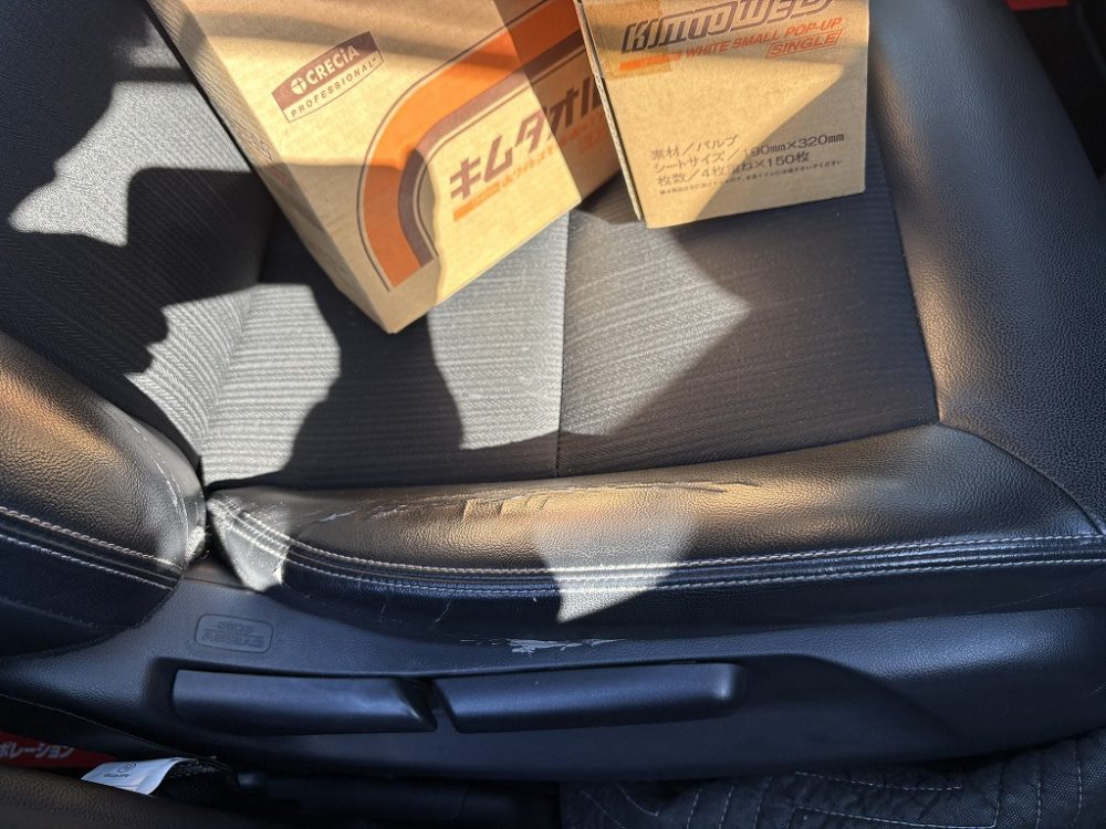 合皮(レザー調)シート破れ補修施工 のご依頼をいただきました。