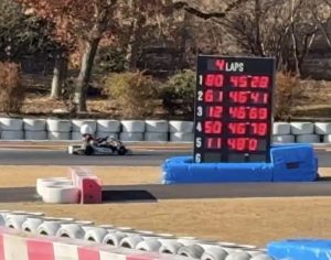そのMAXのタイムに小4息子は割って入り、タイムトライアルでは総合2位/18台、KTクラス1位/14台。その後、路面が暖かくなるとMAX勢には敵わなくなりましたが、予選まではKT1位をキープしました。