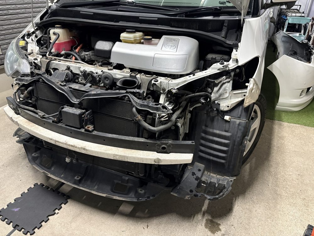 現地でやれることはなかったため、中古のバラストを3,000円くらいで調達してから後日修理を行いました。ヘッドライトを外す必要があるので冒頭の画像の通りバンパーを外さなければなりません。一苦労です…