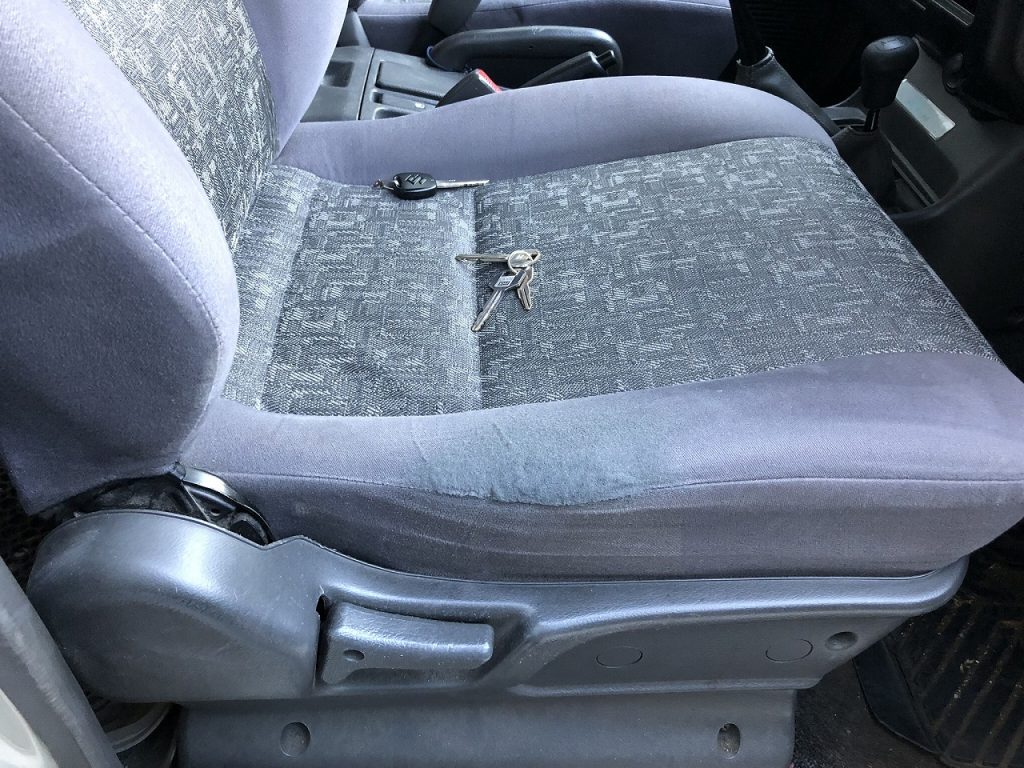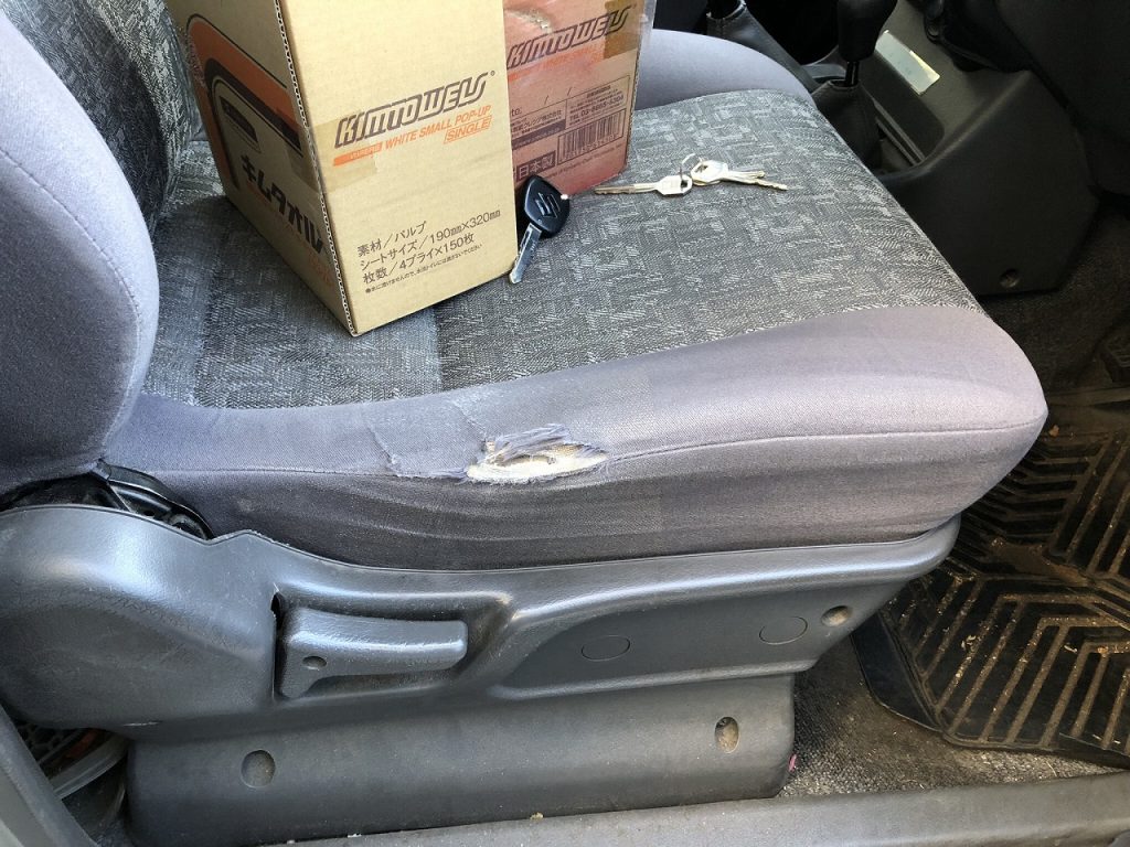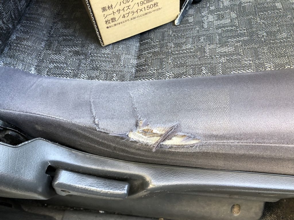 ビッグホーンのシートリペアですが、車を処分する直前にササっと済ませたもので、穴が塞がっていればよいという状態です。当社が車の処分からお引き受けしたため、私がOKならOKという仕事です(笑)